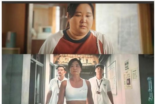 贾玲在纪录片中展示了自己的减肥过程:吃得少却练得狠,拖着疲惫的身躯仍然坚持去健身房,哪怕皮肤松弛、腹部赘肉凸出,也依旧咬牙前行。